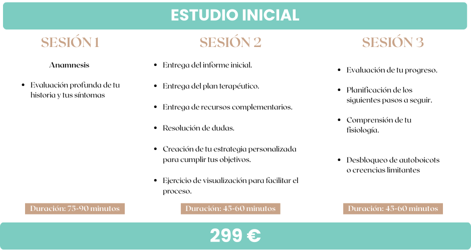 3. Visitas de seguimiento de 1h. Después de la segunda visita, nos iremos viendo para revisar tu evolución, ajustar el tratamiento y abordar, si fuera necesario, algún bloqueo que te estuviera impidiendo mejorar.